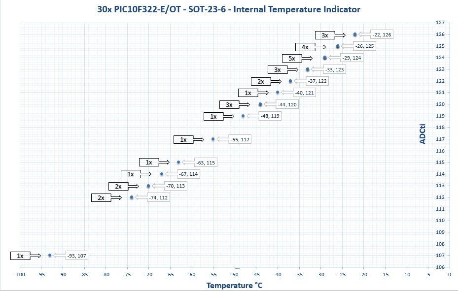 The conclusion after such analysis effort is that PIC10F322 gives a too wide range for the temperature measurement which cannot be used without calibration.